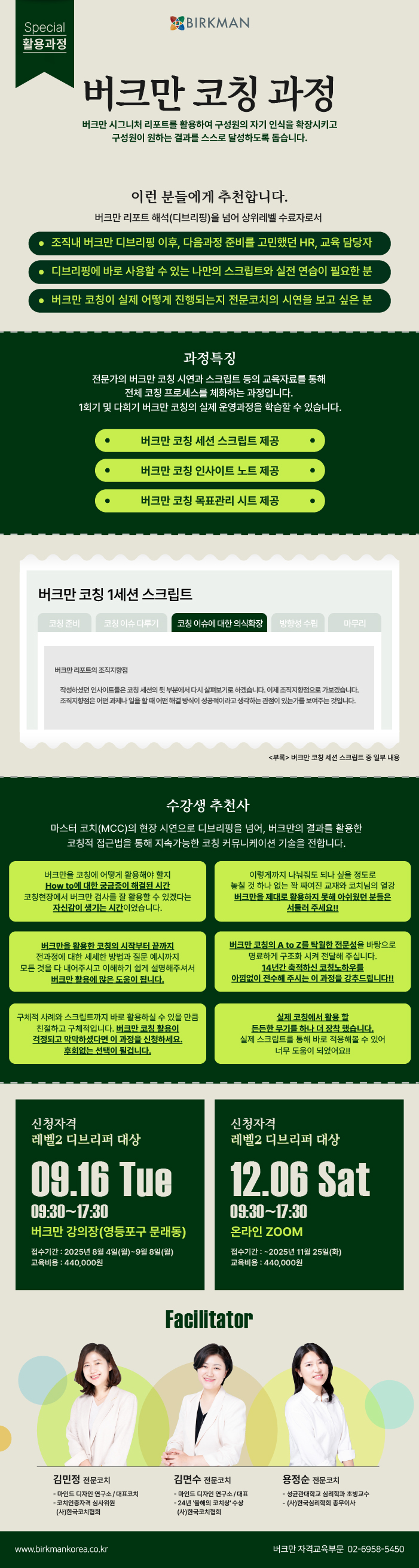 - 버크만 1회기 코칭 프로세스 및 실습 - 버크만 다회기 코칭 프로세스 - 버크만 다회기 코칭 FT시연 - 버크만 다회기 코칭 실습 |