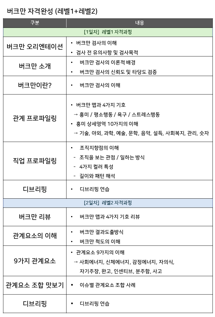 버크만 자격완성 (레벨1+레벨2) 문의답변완료